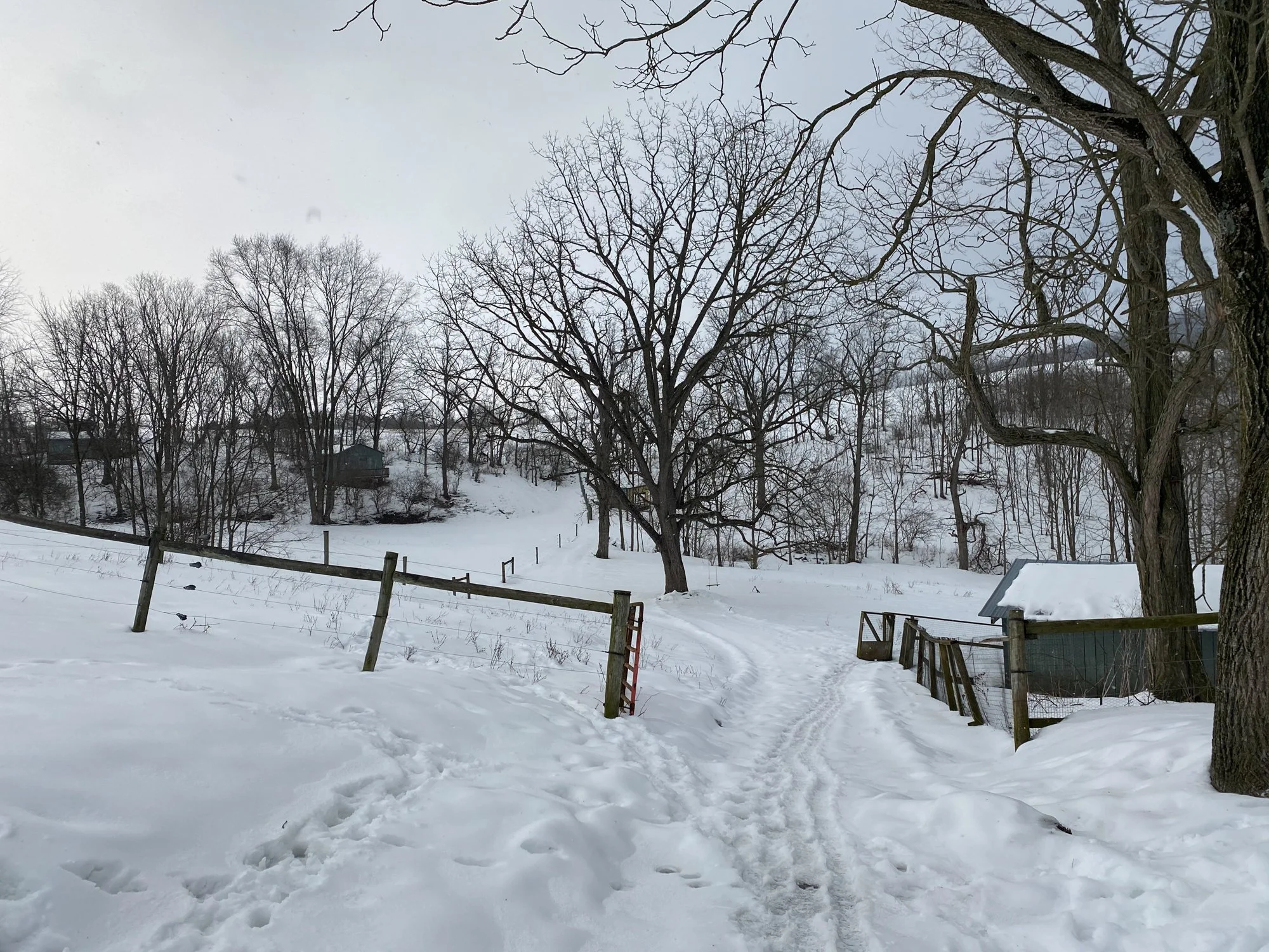 “Ice breakers” and “winter coats” take on a whole new meaning during winter on the farm. In March, newborn lambs, feeding hay, and breaking frozen water tubs are top-of-mind, chickens aren’t laying eggs, Pierre’s feathers have molted, and the summer pigs have gone. The trees are bare and sometimes there is lots of snow!